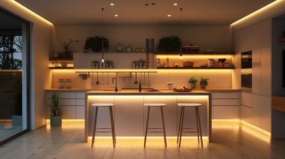 یکی از مهمترین نقاط برای نصب نور مخفی زیر کابینتهای دیواری است که باعث میشود سطح کانتر روشن شود. نورهای مخفی روی کانتر یکی از جذابترین و پرکاربردترین قسمتها برای تعبیه انواع نور مخفی است.